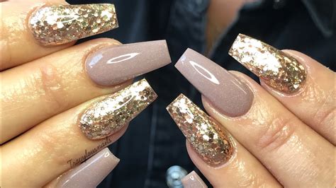 acrylic nails gold glitter