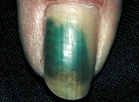23/10/2020 · The green specks that show up on nails are not the result of moisture in any sense. If you see green spots on your nails, then pseudomonas were probably hanging out on your plate when the product was put on initially. This is in many cases the outcome of preparation methods that are not up to par.06/12/2021 · If you remove your artificial nails to reveal a green color, it likely means that the fake nail had lifted and allowed water to get trapped beneath …31/07/2014 · The green-black discoloration of the nail is due to pyocyanin, an antibiotic pigment produced by the Gram-negative P. …01/05/2006 · Green discoloration of the fingernailsdeveloped 6 weeks after a 29-year-oldwoman had artificial nails placed duringa manicure. The patient was a …04/04/2022 · Green nail syndrome (GNS) is an infection of the nails that leads to a greenish discoloration of nails, also known as chloronychia. The green …15/07/2008 · Re: Artificial nails & green discoloration A green to brown to black discoloration is classic for Pseudomonas Bacterial infection which you more …01/12/2021 · The answer is D: Pseudomonas infection, or green nail syndrome. A cutaneous Pseudomonas aeruginosa infection results in blue-green biofilm on the surface of the nail. …Although this green discoloration may have the appearance of a mold, this is NOT a mold. Mold is not a human pathogen. This green stain on the nail plate is actually “Pseudomonas bacterial infection” Pseudomonas (sue-dough-no-mus) bacterial spores can become trapped between the nail …28/08/2018 · And this green discoloration varies from blue-green to dark green to bluish-grey and the discoloration depends on the extent of infection. Since the discoloration is underneath the nail, it will not disappear with washing or scrubbing the hands. Green nail syndrome is usually confined to one or two nails or it can also involve all the nails and can involve fingernails or toenails. Green nail …20/12/2010 · Discolored nails could be the result of several things, including exposure to contaminated liquid, powder, primer, or brushes. Another …